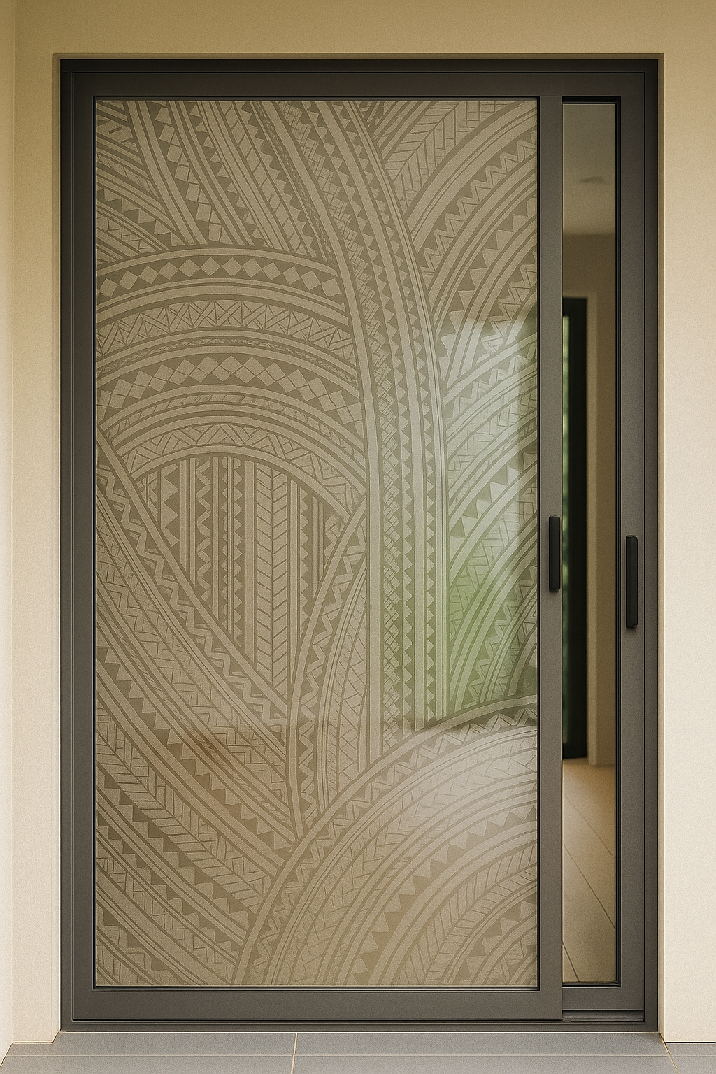 Our Samoan Transparent PVC Film features refined patterns from siapo (tapa cloth) and symbols of Samoan identity. With a smooth, glossy finish, this design lets light through while celebrating your roots — perfect for uplifting any space with cultural pride.